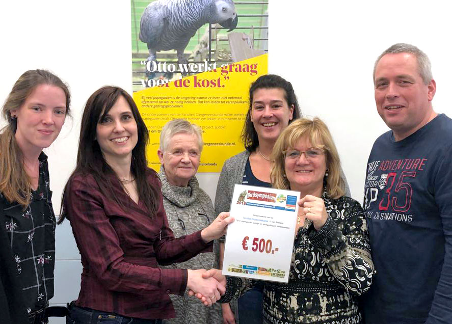 Gisteren kwam Thiely de Moor namens het Birdsymposium een cheque hiervoor overhandigen aan dr. Yvonne van Zeeland. Bedankt voor de donatie! Zo kunnen we zorgen dat nog meer papegaaien lekker in hun vel komen te zitten! Het bezoek kreeg natuurlijk ook een rondleiding, het was een hele interessante middag!